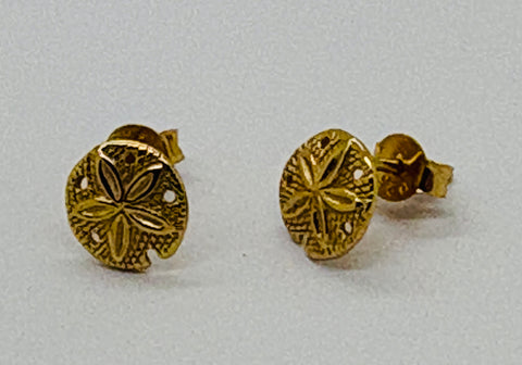 ,8mm Round Sand Dollar Stud Sterling Silver or gold Plated Sterling Silver (1 micron 18ct gold).